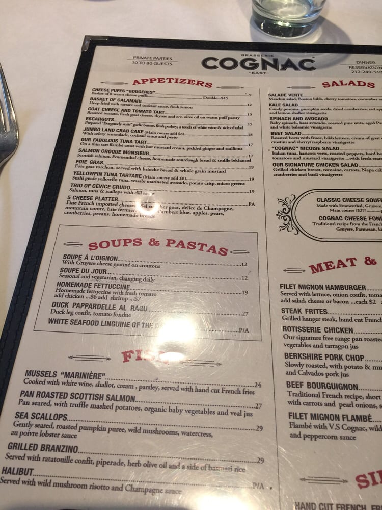Brasserie Cognac East Menu